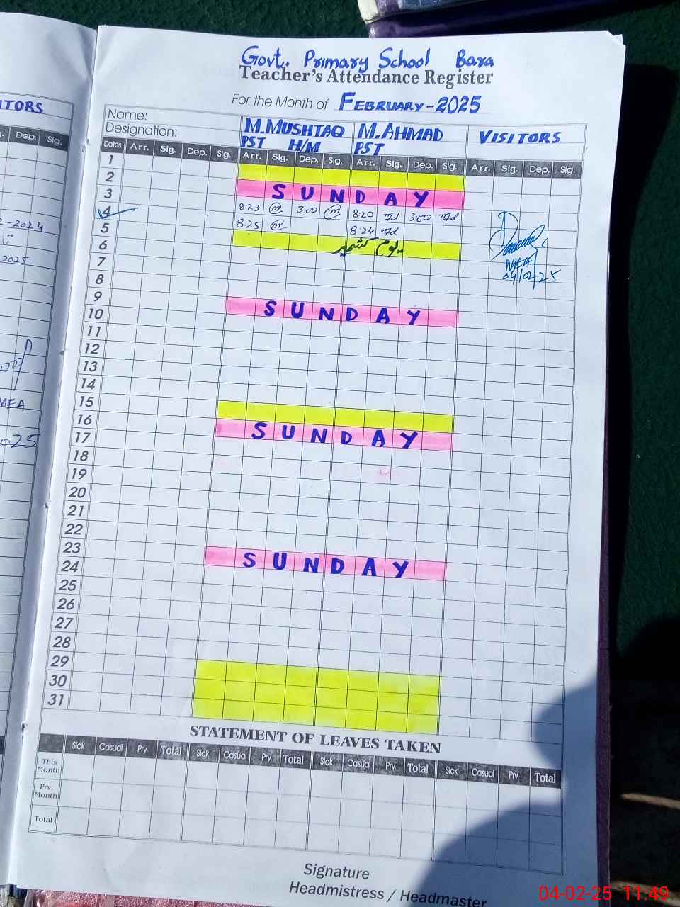 | Name: MU**** MU**** Designation: (School Headmaster's/Headmistress's) PST Phone/Cell Number: 03**** |