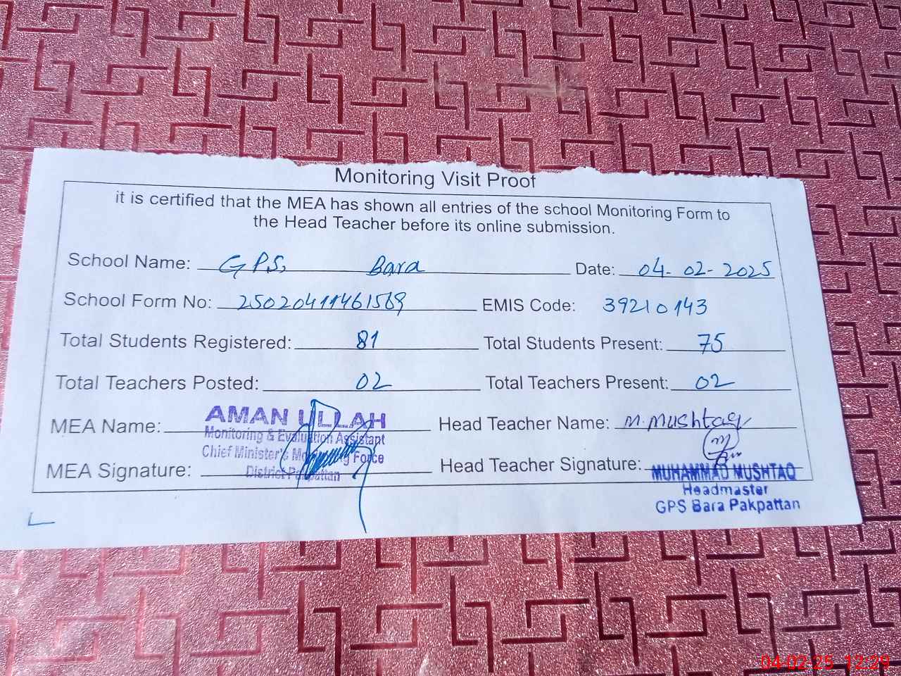 | EMIS Code: 39210143 | Name of School: GPS BARA | |||