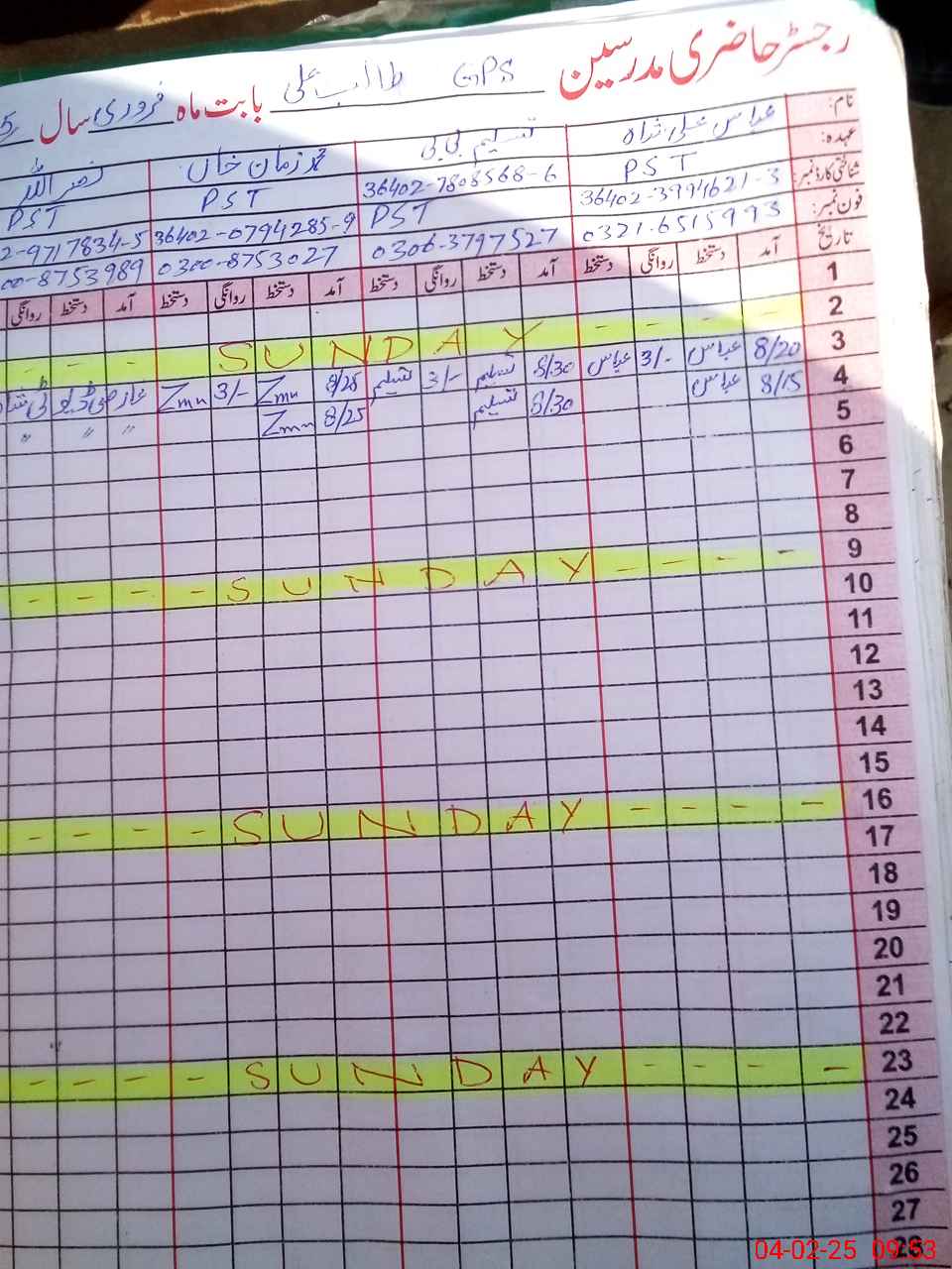 | Name: Ab**** Al**** Sh**** Designation: (School Headmaster's/Headmistress's) PST Phone/Cell Number: 03**** |