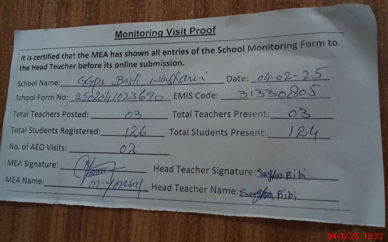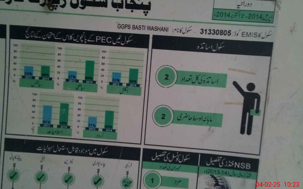 | EMIS Code: 31330805 | Name of School: GGPS BASTI WASHANI | |||