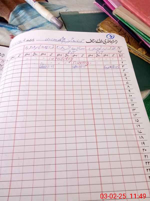 | CNIC | Full Name | Designation | R/C | Absence During Last Calender Month |