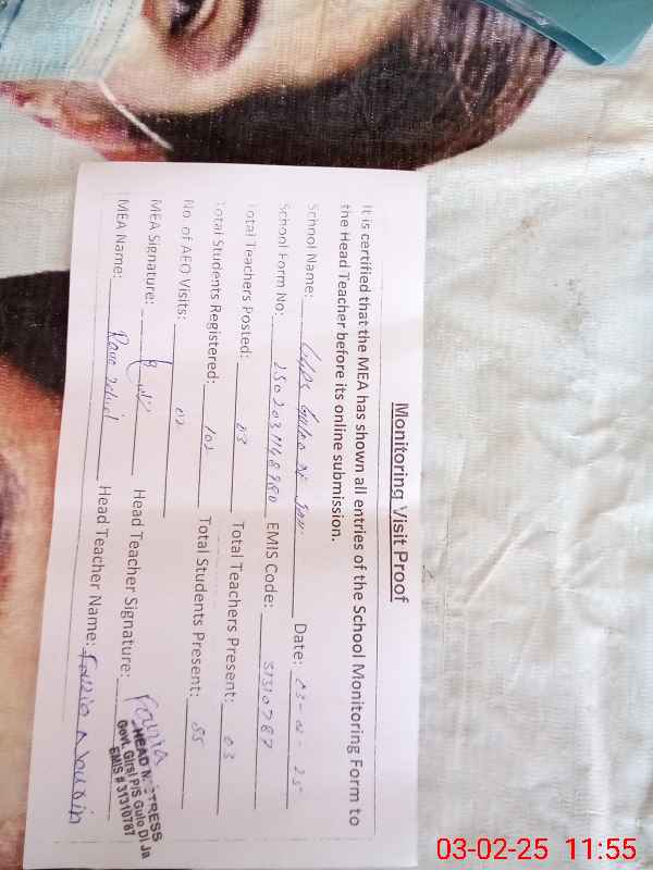 | Attendance Register | Head Teacher | MEA with School | Visit Proof |