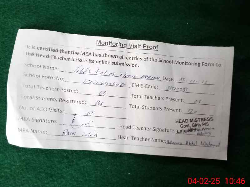 | EMIS Code: 31310355 | Name of School: GGPS LALOO MATHA ARRAIN | |||