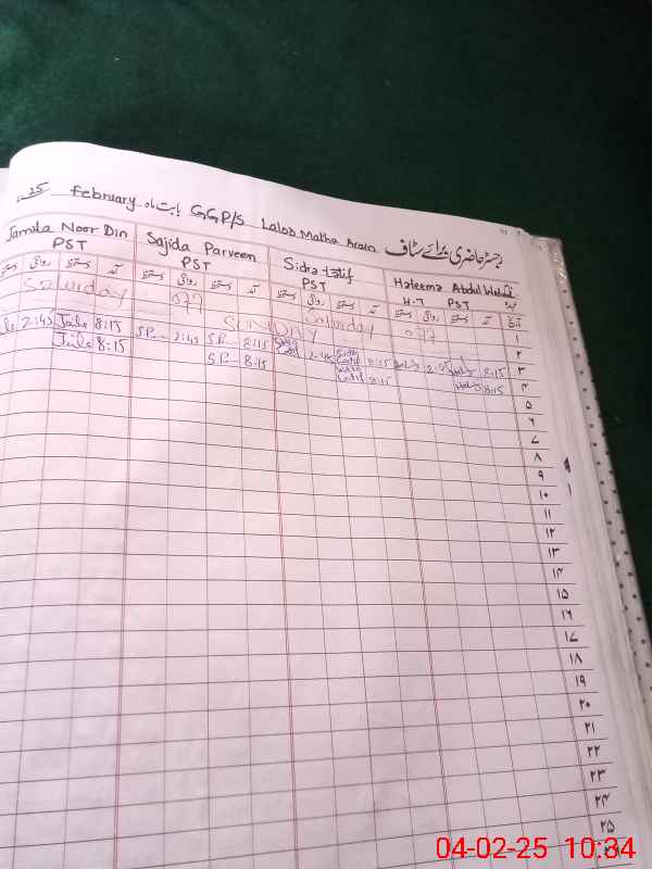 | CNIC | Full Name | Designation | R/C | Absence During Last Calender Month |