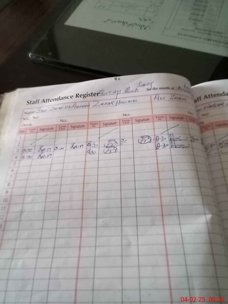 | CNIC | Full Name | Designation | R/C | Absence During Last Calender Month |
