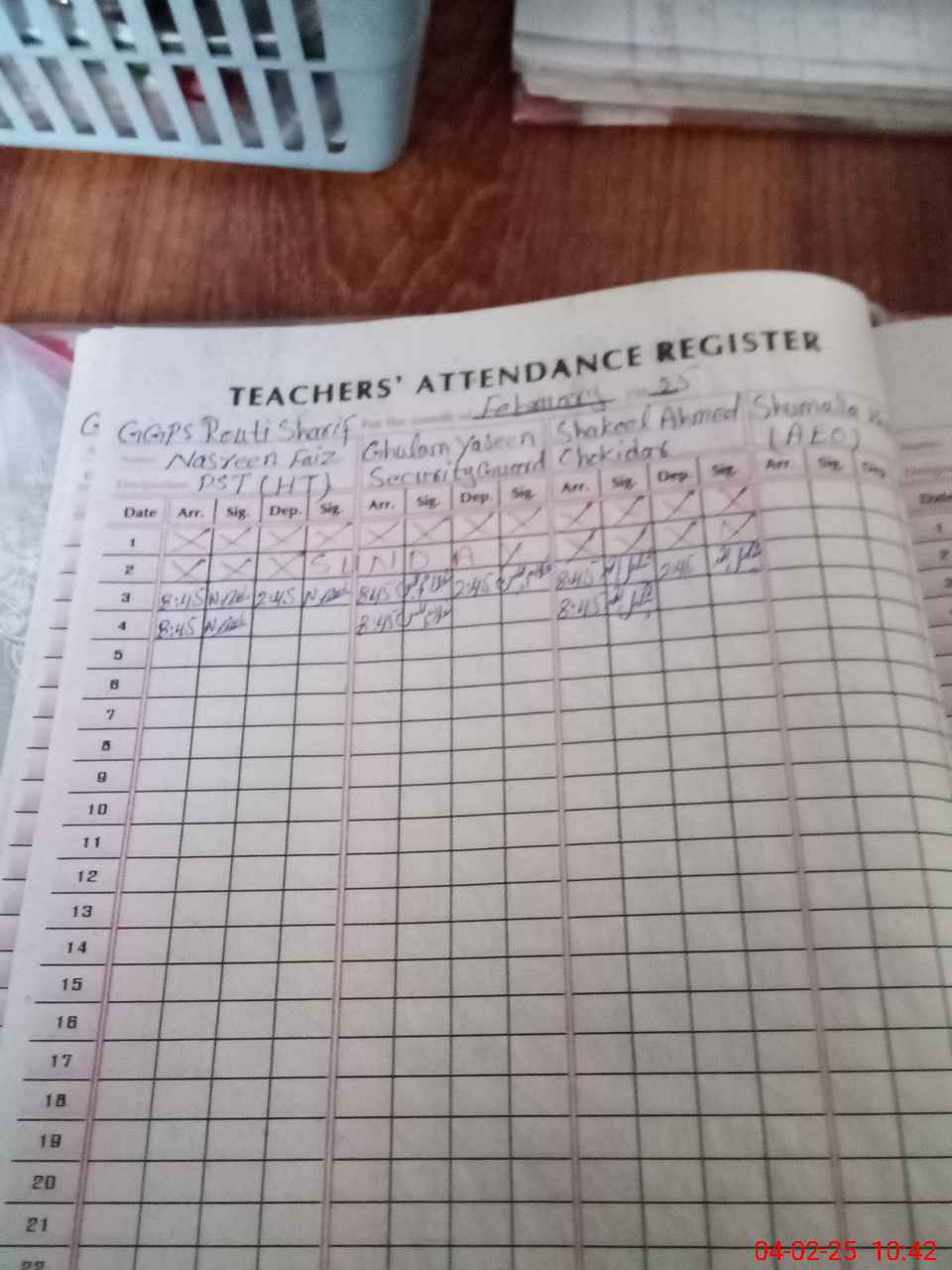| CNIC | Full Name | Designation | R/C | Absence During Last Calender Month |
