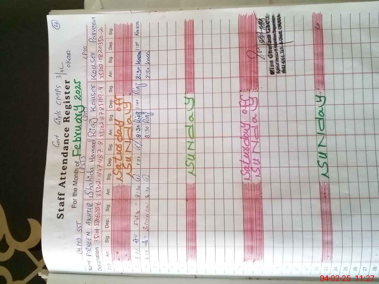 | Name: PA**** AK**** Designation: (School Headmaster's/Headmistress's) S.S.T.(GEN) Phone/Cell Number: 03**** |