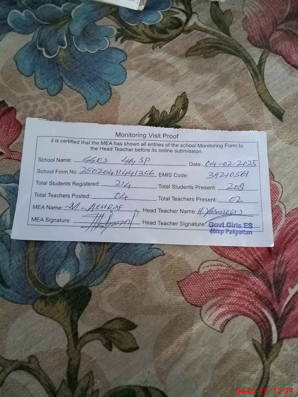 | EMIS Code: 39210561 | Name of School: GGES 46/SP | |||