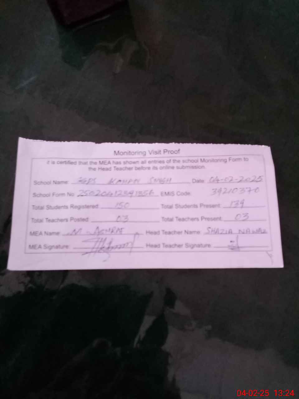 | EMIS Code: 39210370 | Name of School: GGPS KAHAN SINGH | |||
