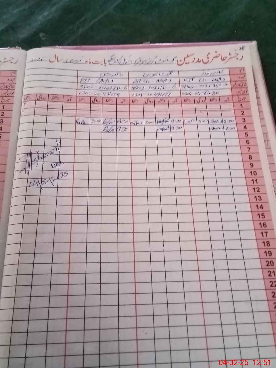 | Name: SH**** NA**** Designation: (School Headmaster's/Headmistress's) PST Phone/Cell Number: 03**** |
