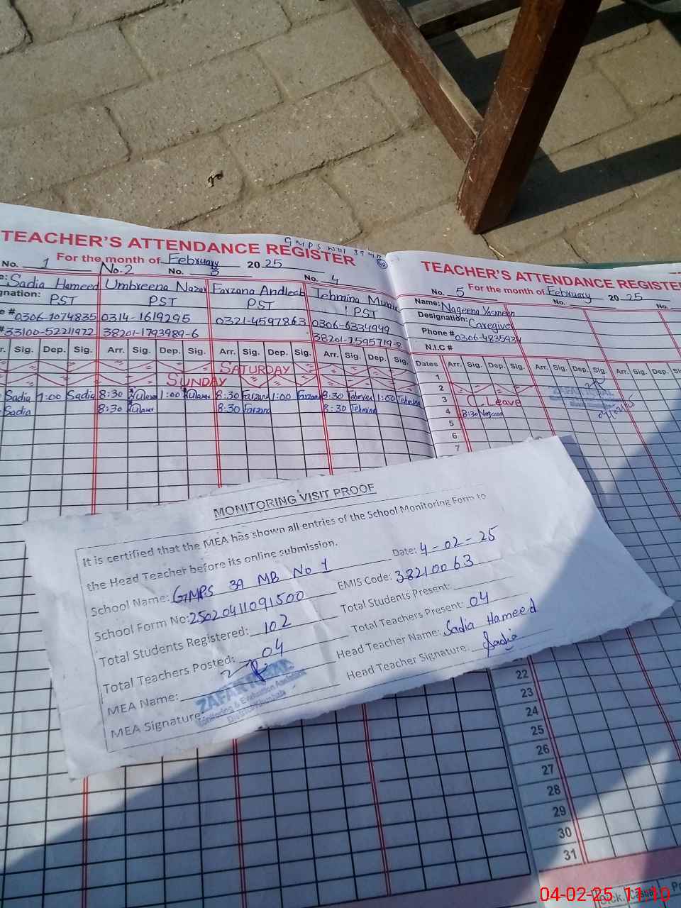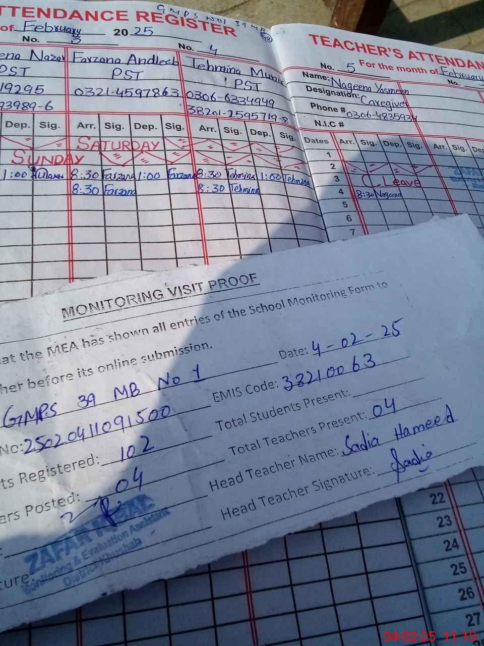 | EMIS Code: 38210063 | Name of School: GMPS NO. 1 CHAK NO. 39 MB JAUHARABAD | |||