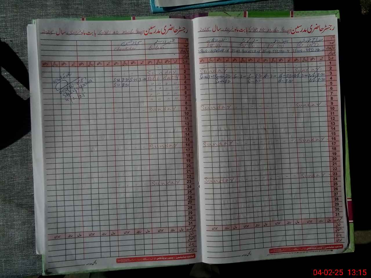 | CNIC | Full Name | Designation | R/C | Absence During Last Calender Month |