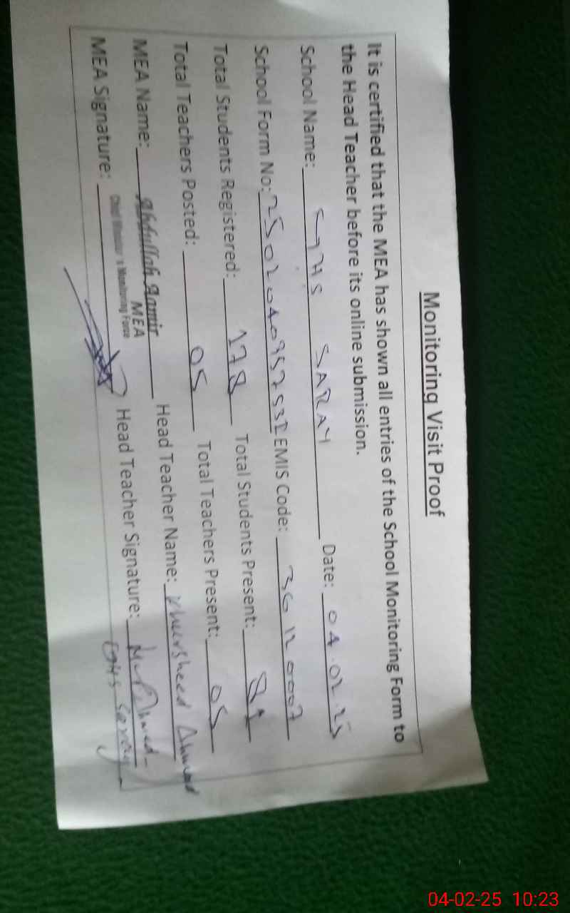 | EMIS Code: 36120007 | Name of School: GHS SARAY SHUJA ABAD CHAK SARAY TEH. SHUJABAD | |||