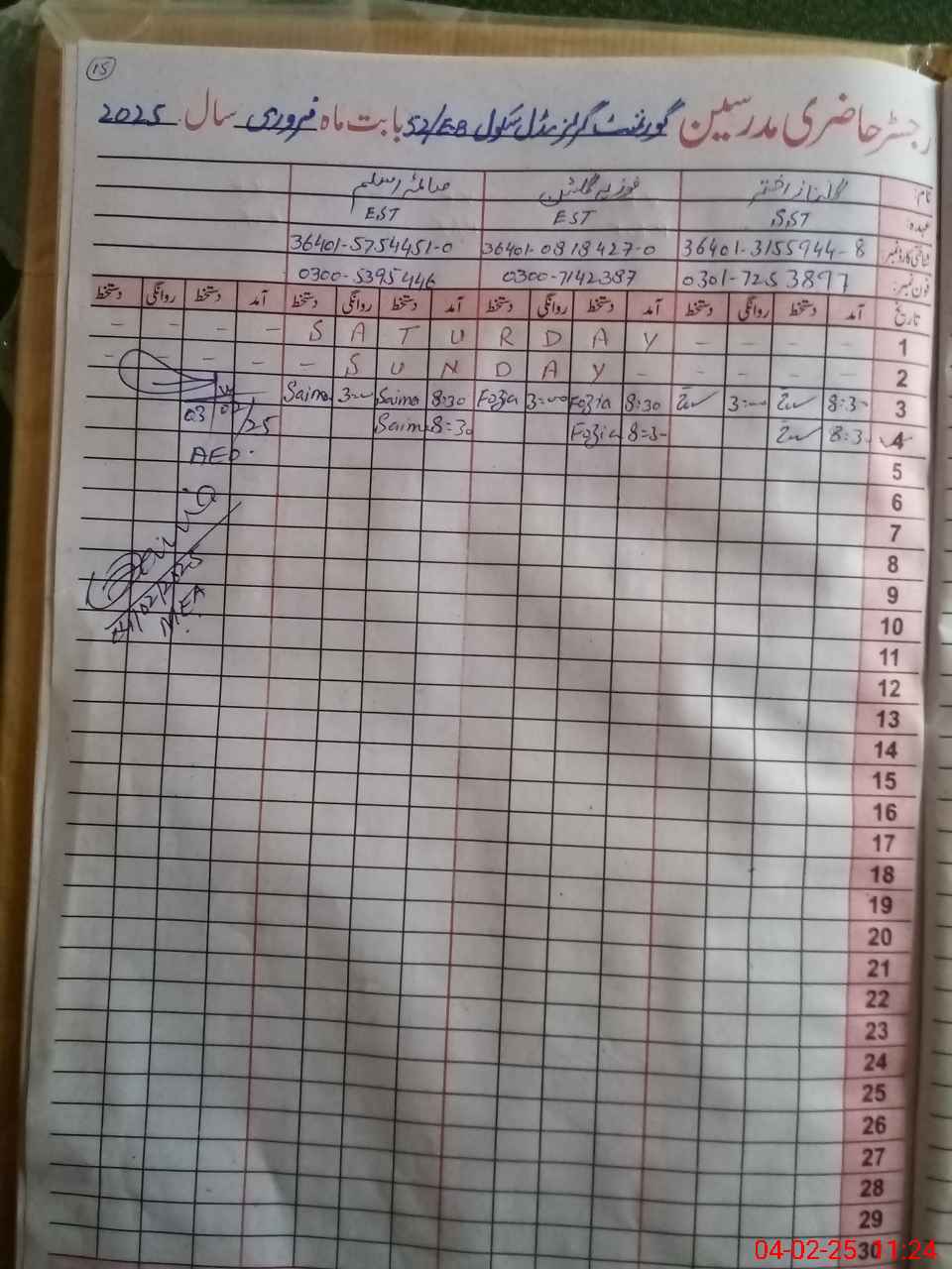 | Name: GU**** AK**** Designation: (School Headmaster's/Headmistress's) SST (GENERAL) Phone/Cell Number: 03**** |
