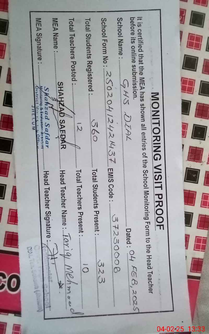 | EMIS Code: 37230008 | Name of School: GHS DIAL | |||