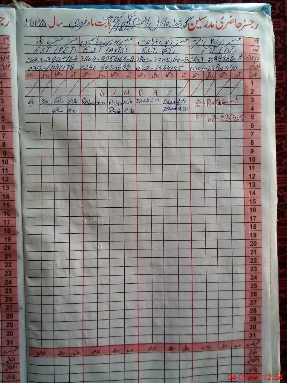 | Name: Ro**** Ya**** Designation: (School Headmaster's/Headmistress's) EST Phone/Cell Number: 03**** |