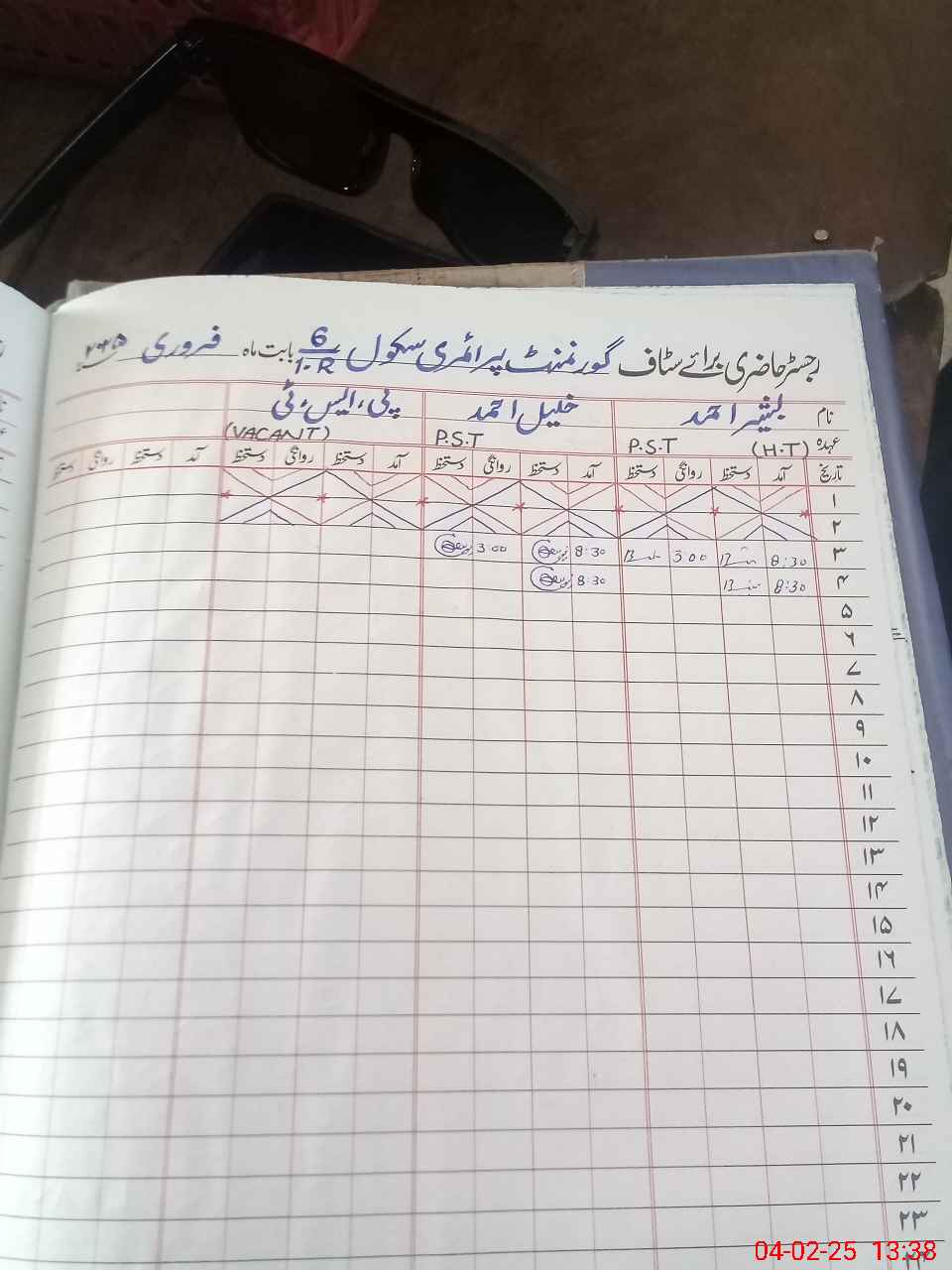 | CNIC | Full Name | Designation | R/C | Absence During Last Calender Month |