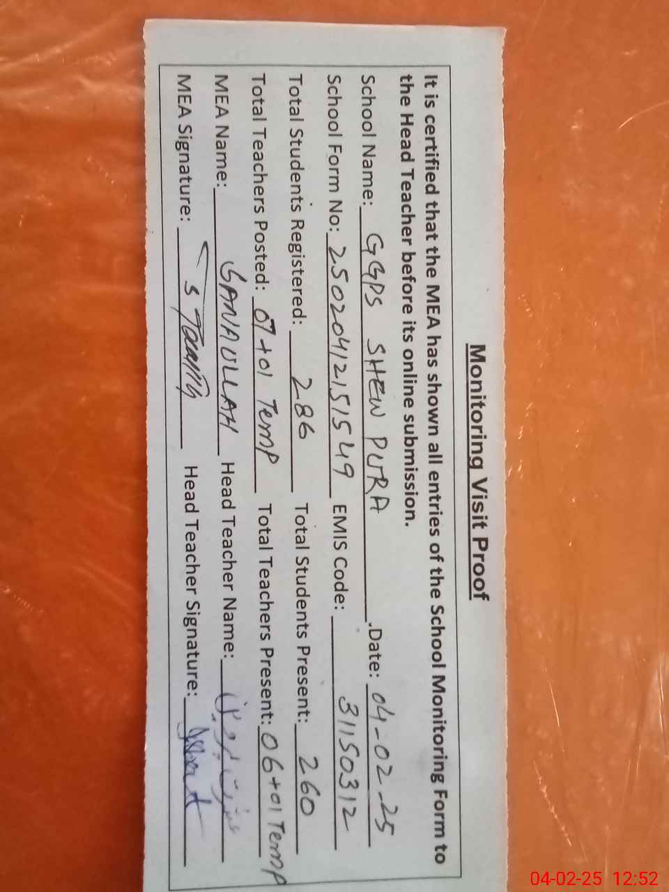 | EMIS Code: 31150312 | Name of School: GGPS SHEV PURA | |||