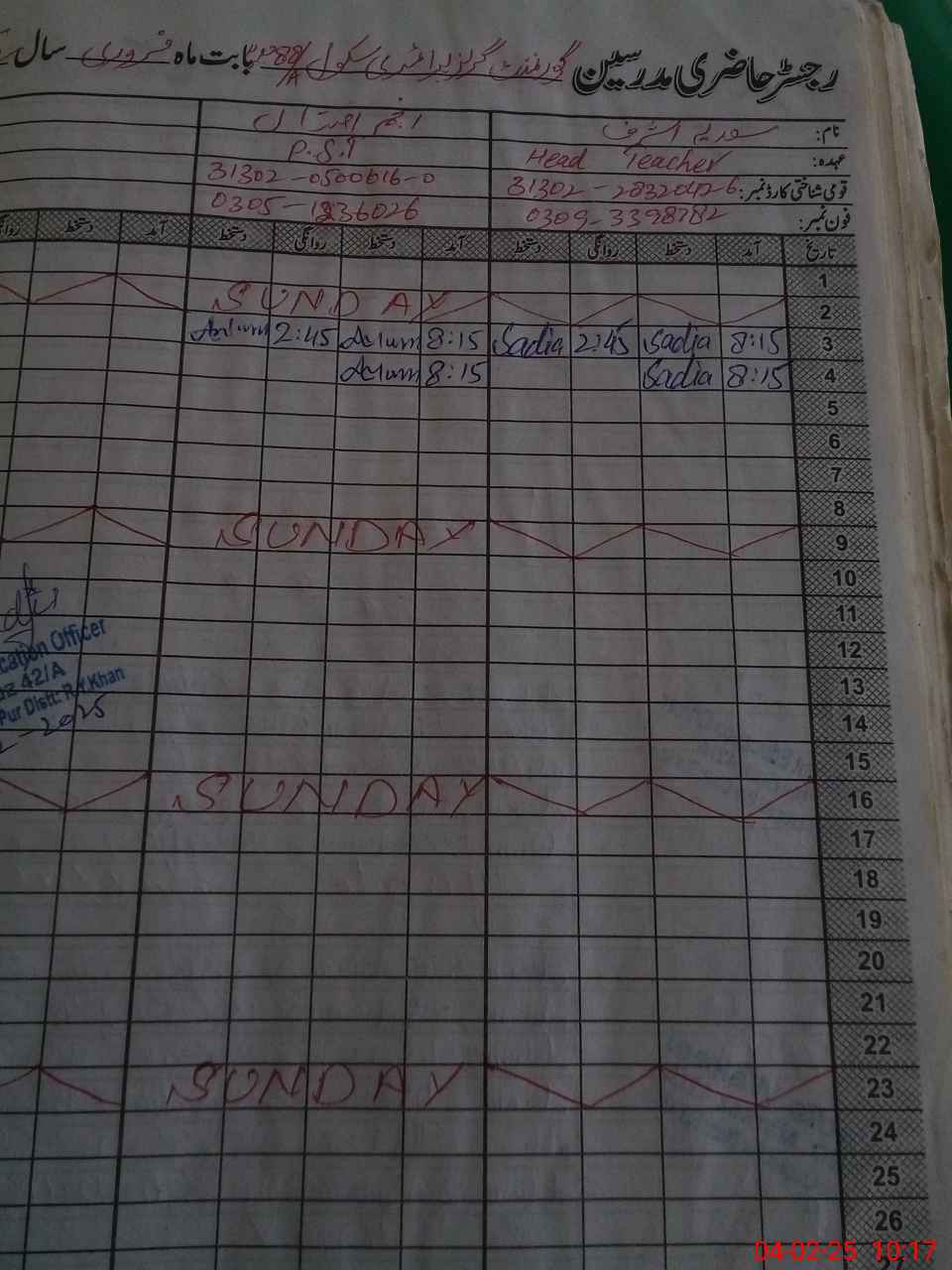 | Name: Sa**** As**** Designation: (School Headmaster's/Headmistress's) PST Phone/Cell Number: 03**** |