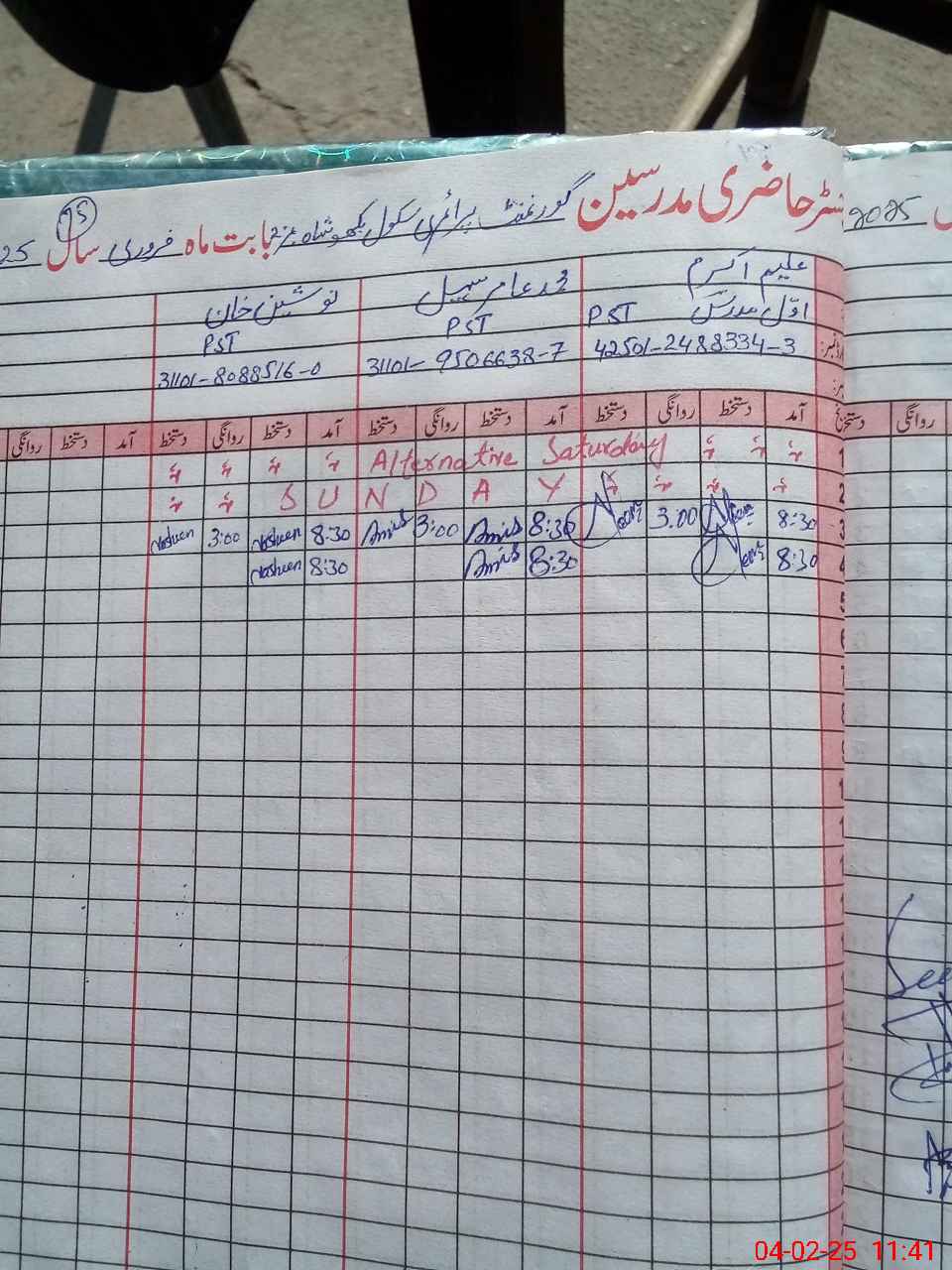 | Name: AL**** AK**** Designation: (School Headmaster's/Headmistress's) PST Phone/Cell Number: 03**** |