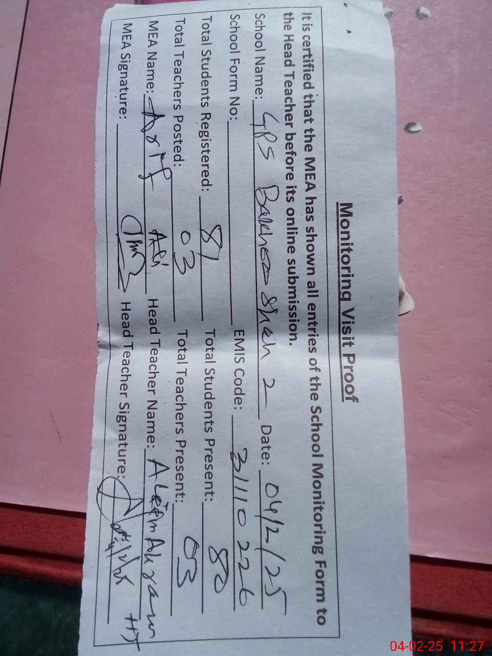| EMIS Code: 31110226 | Name of School: GPS BAKHU SHAH NO.2 | |||