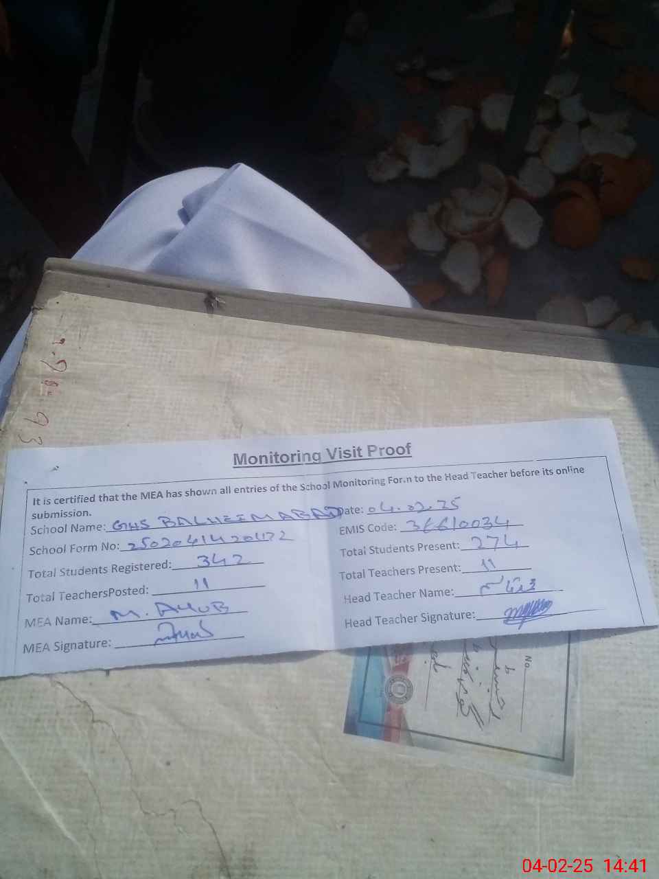 | EMIS Code: 36610034 | Name of School: GHS BALHEEM ABAD MOUZA PUGAL WARI | |||