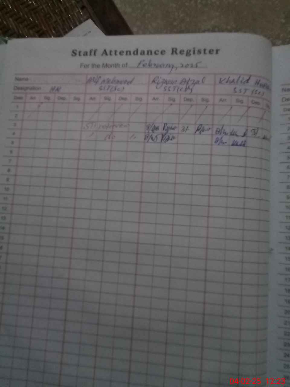 | Name: AS**** MA**** Designation: (School Headmaster's/Headmistress's) SST Phone/Cell Number: 03**** |