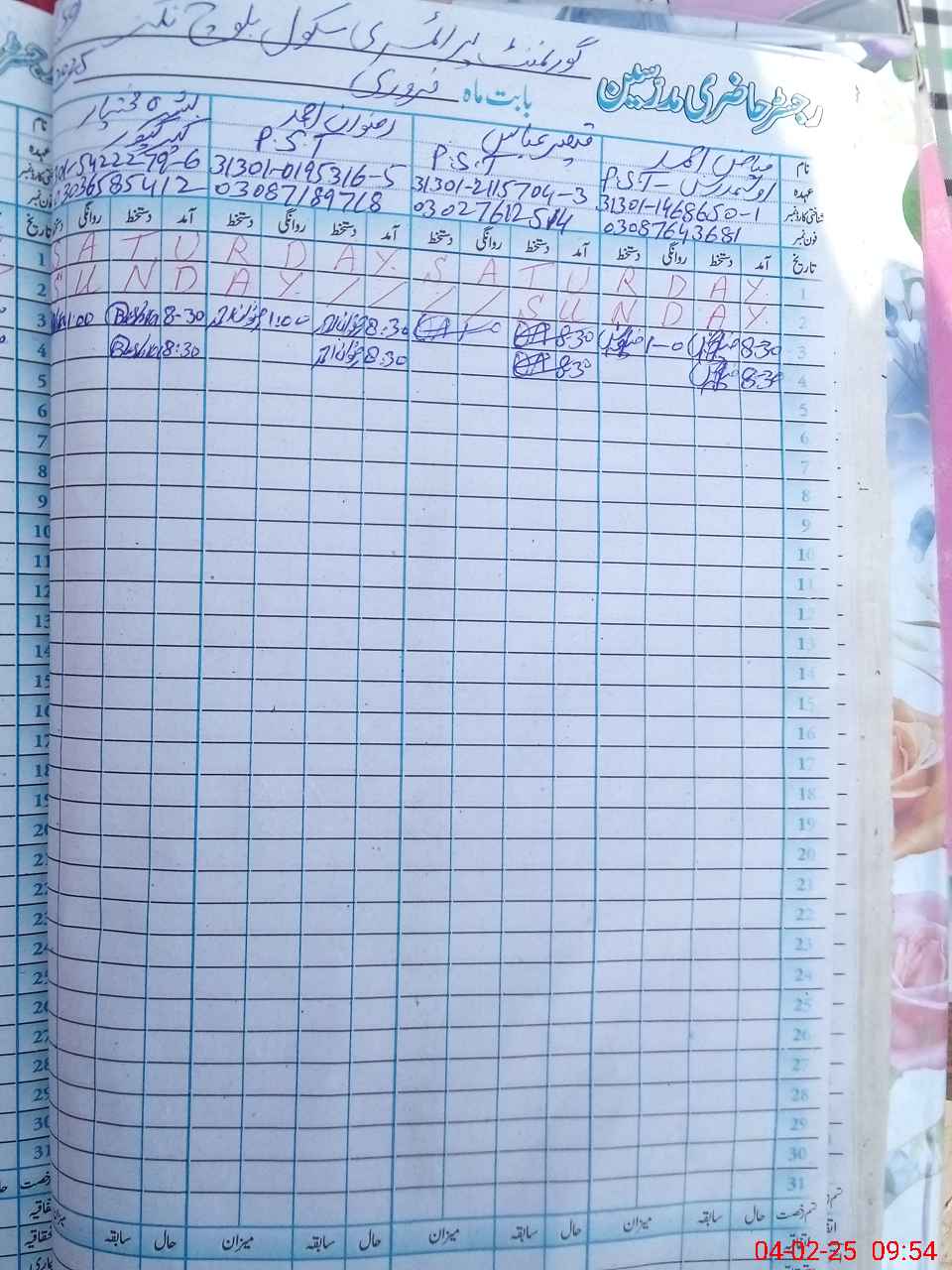 | Name: Fi**** Ah**** Designation: (School Headmaster's/Headmistress's) PST Phone/Cell Number: 03**** |