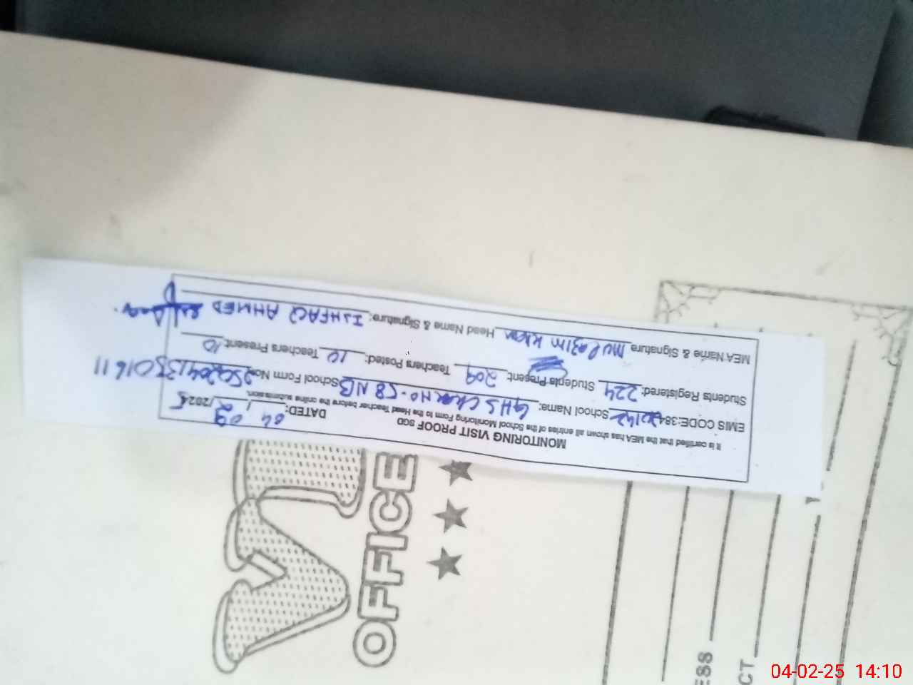 | EMIS Code: 38420142 | Name of School: GHS CHAK NO.58 NB | |||