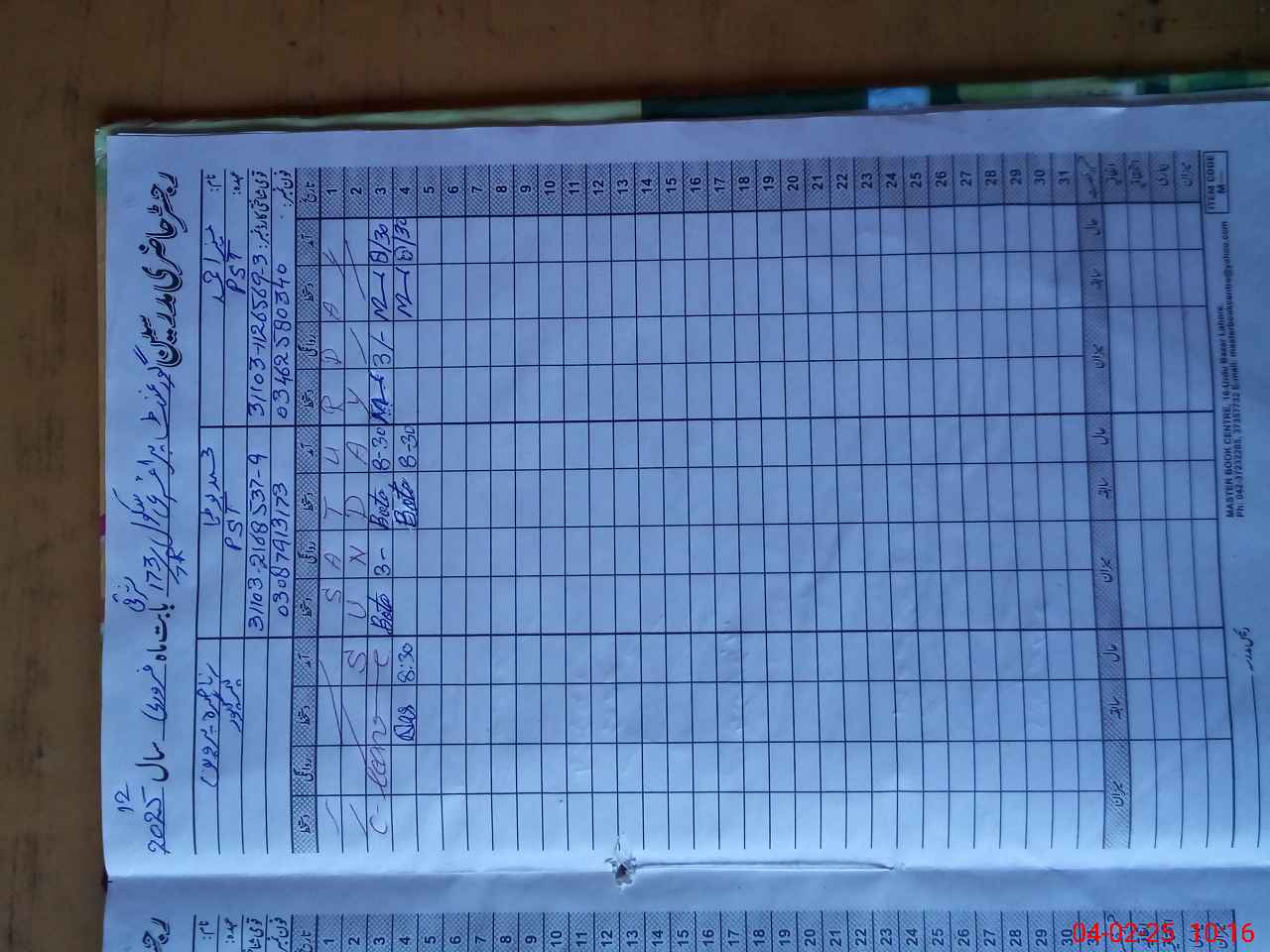 | CNIC | Full Name | Designation | R/C | Absence During Last Calender Month |
