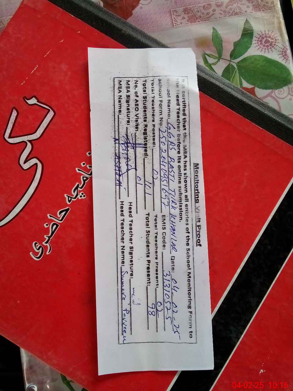 | EMIS Code: 31310525 | Name of School: GGPS BASTI TURK KHAN LAAR | |||