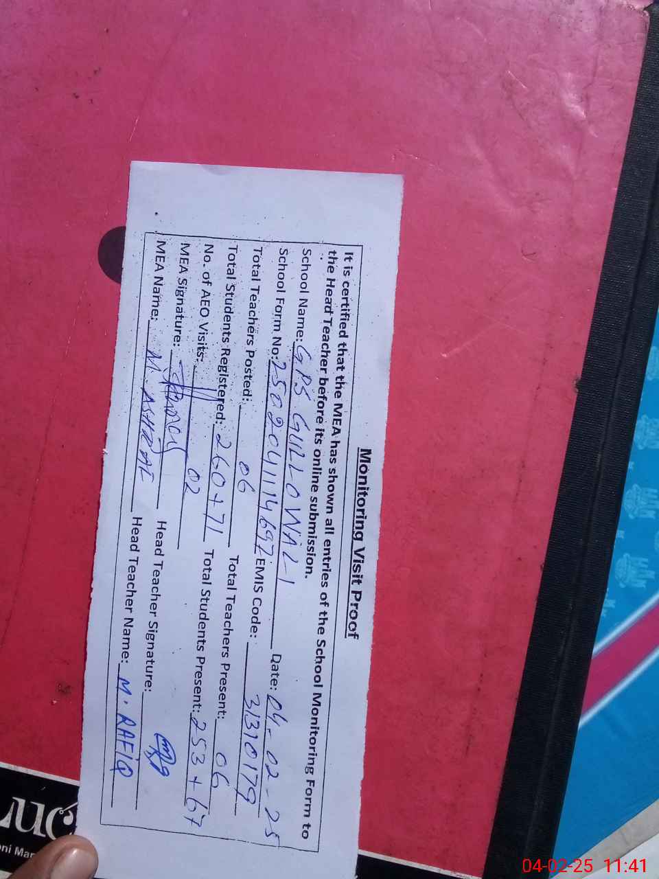 | EMIS Code: 31310179 | Name of School: GPS GULOOWALI (After Noon) | |||
