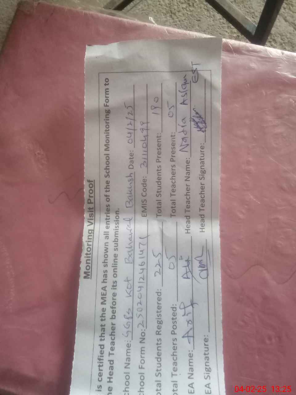 | EMIS Code: 31110499 | Name of School: GGPS KOT BAHAWAL BUKHASH | |||
