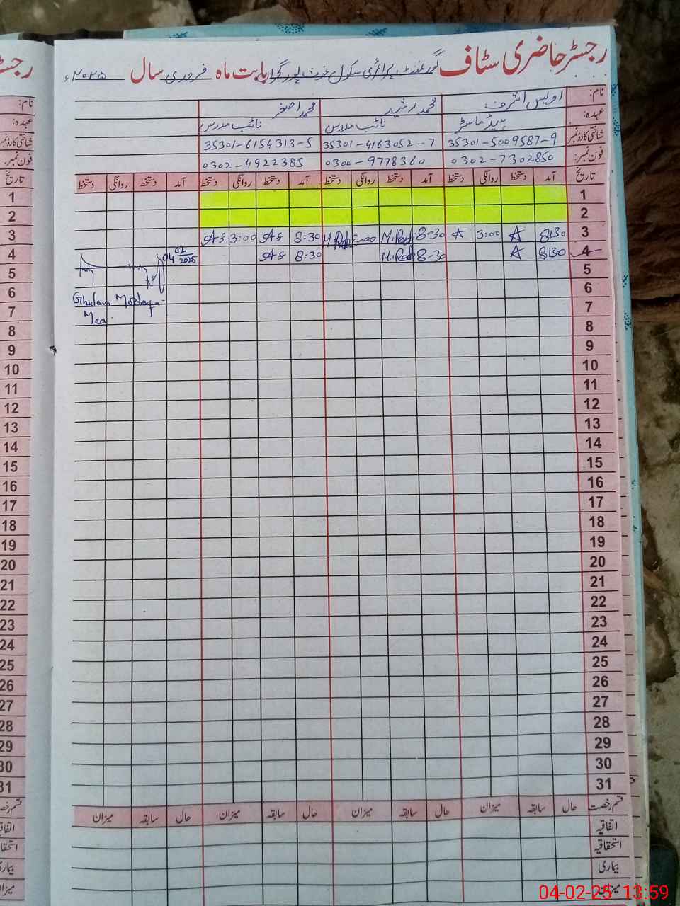 | Name: Mu**** Ak**** Designation: (School Headmaster's/Headmistress's) PST Phone/Cell Number: 03**** |