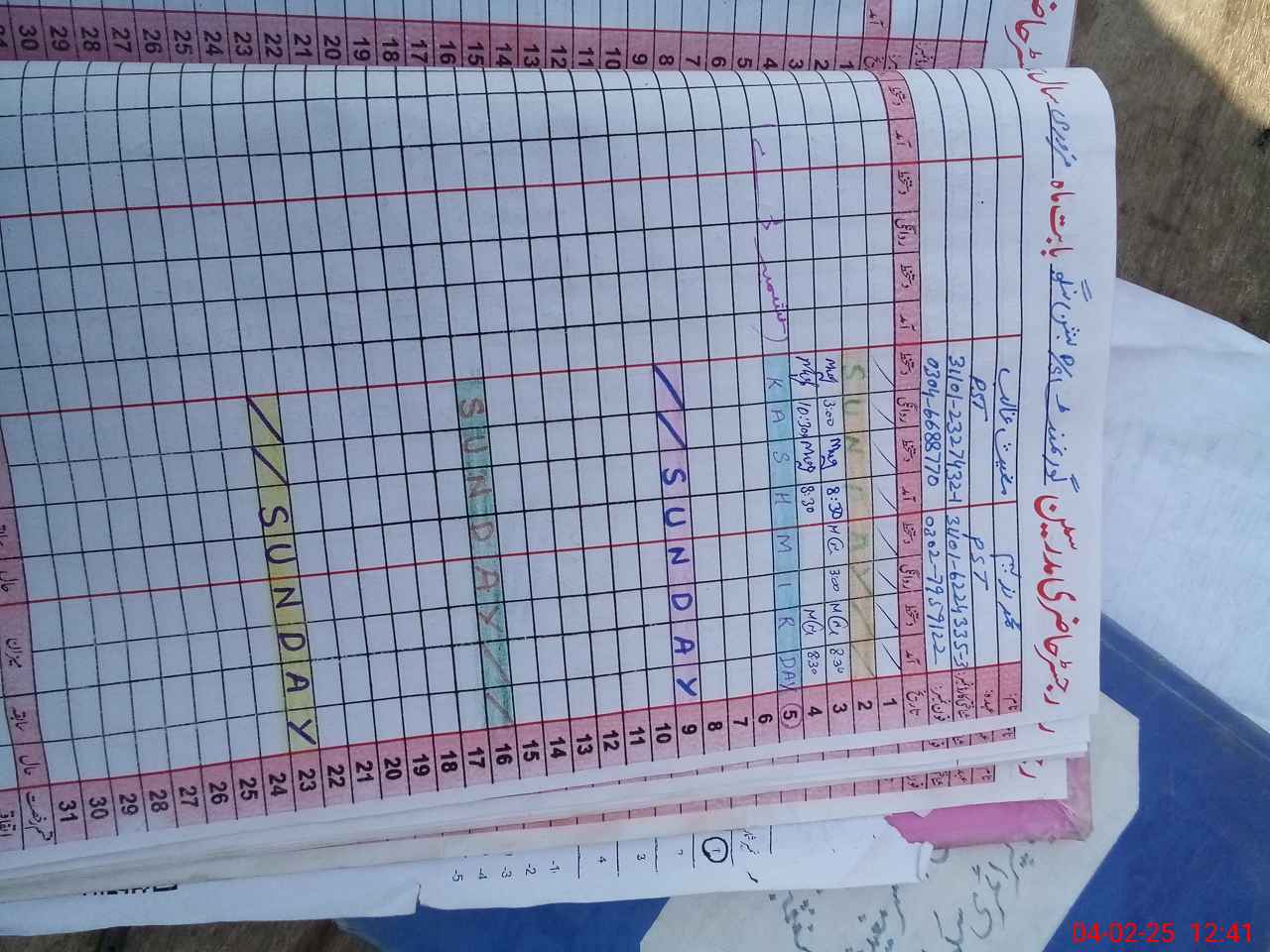 | 31**** | Mu**** Gh**** | 2 | 0 | 0 | 0 | 0 | 0 | 0 | 0 | 0 | 0 | Absent (Un-Authorized) | |
