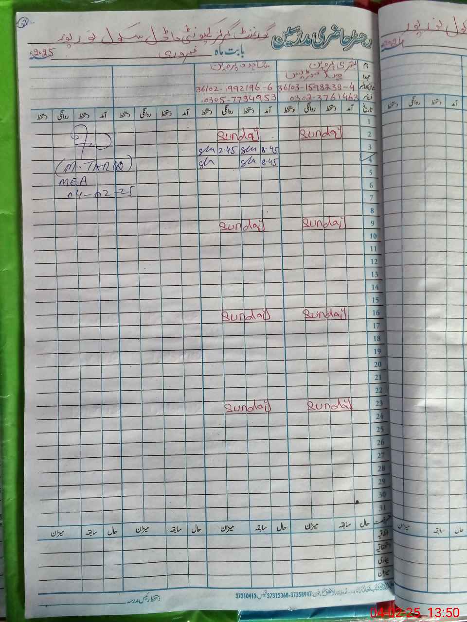 | EMIS Code: 36410350 | Name of School: GGCMS NOOR PUR, KABIRWALA | |||