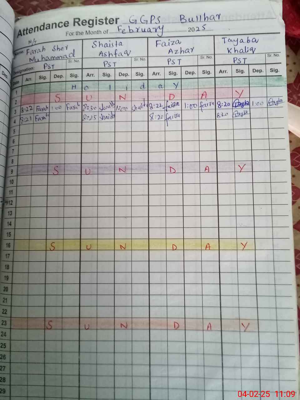 | CNIC | Full Name | Designation | R/C | Absence During Last Calender Month |