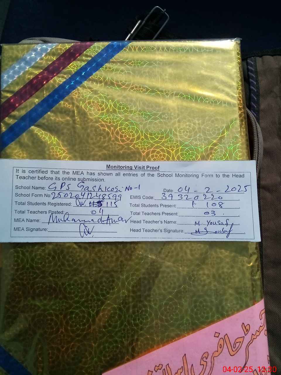 | EMIS Code: 39320221 | Name of School: GPS GASHKORIAN NO 1 | |||