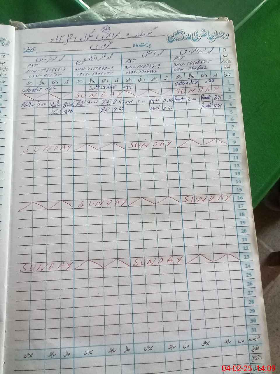 | CNIC | Full Name | Designation | R/C | Absence During Last Calender Month |