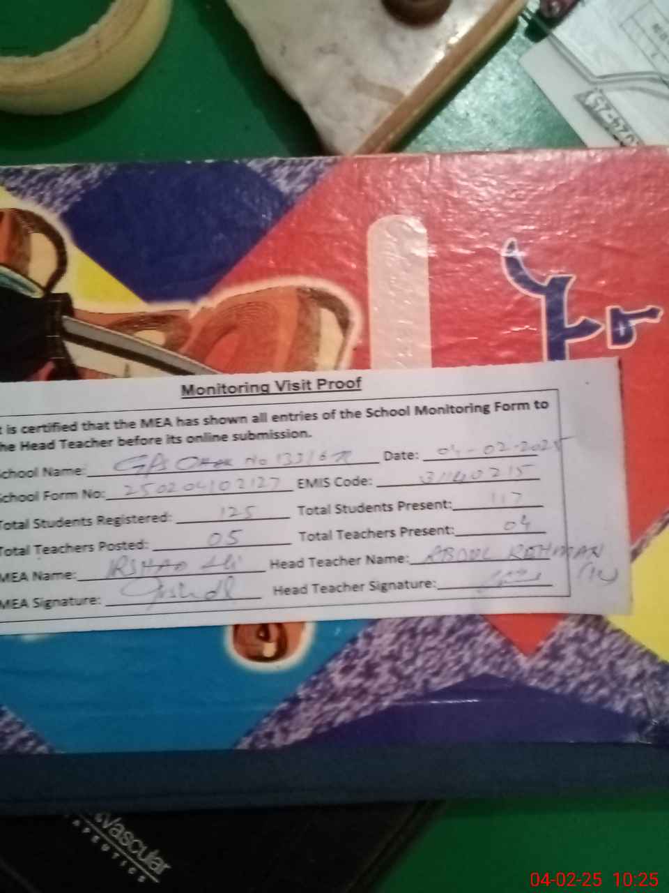 | EMIS Code: 31140215 | Name of School: GPS CHAK 133/6-R | |||