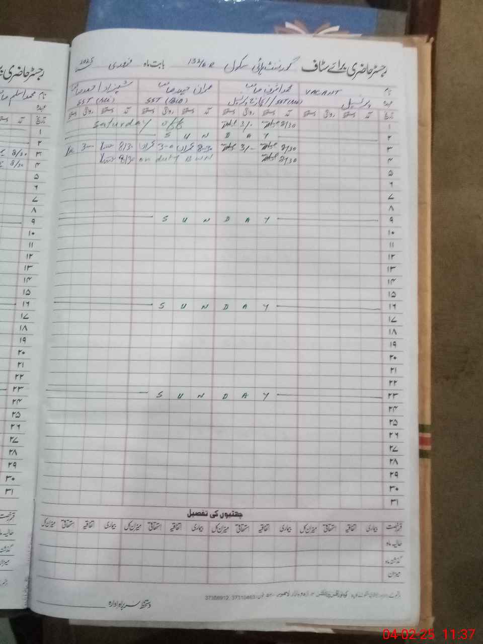 | 31**** | Mu**** Iq**** | B DAR | Regular | 1 | 0 | 0 | 0 | 0 | 0 | 0 | 0 | 1 | Casual |