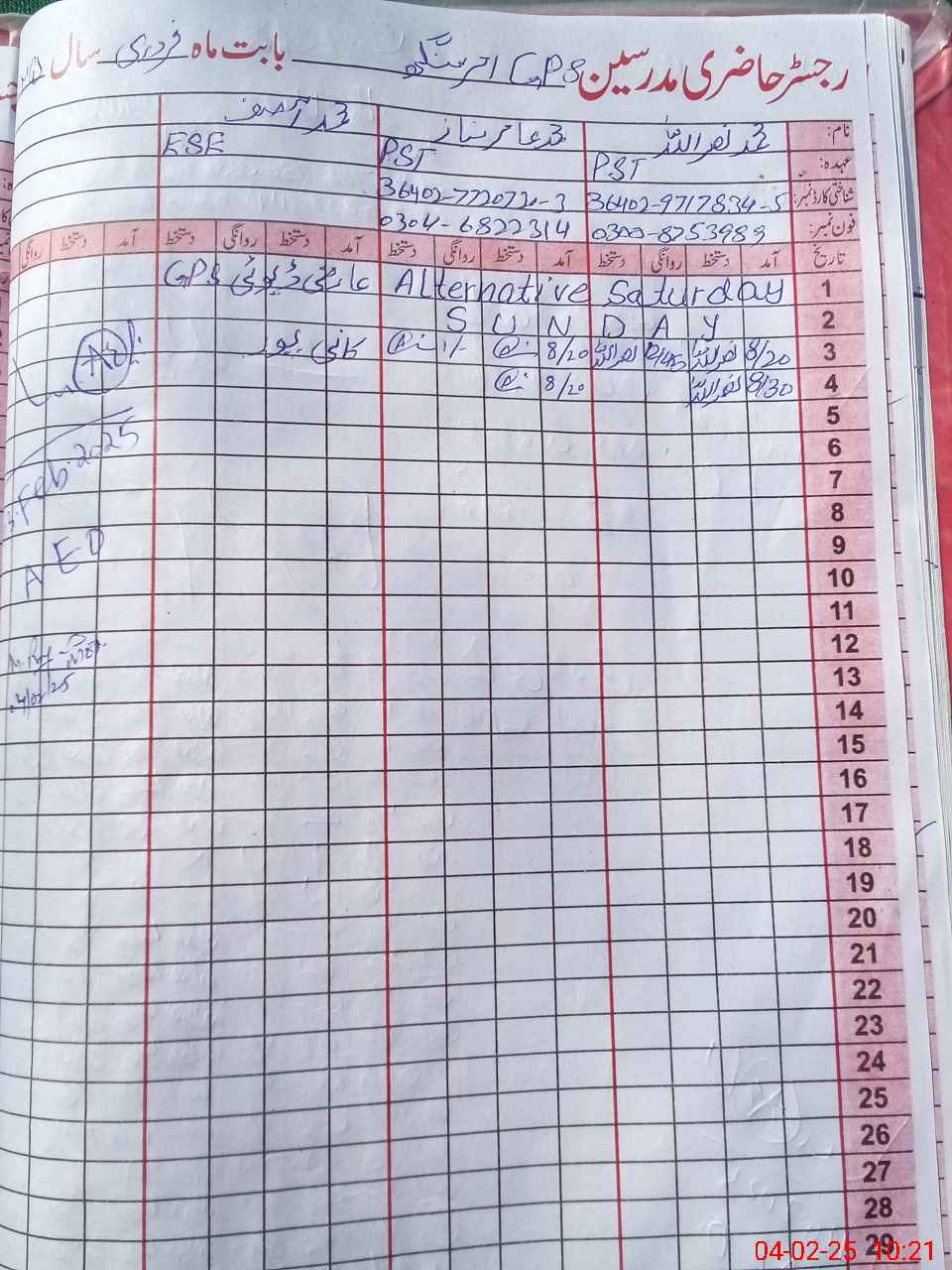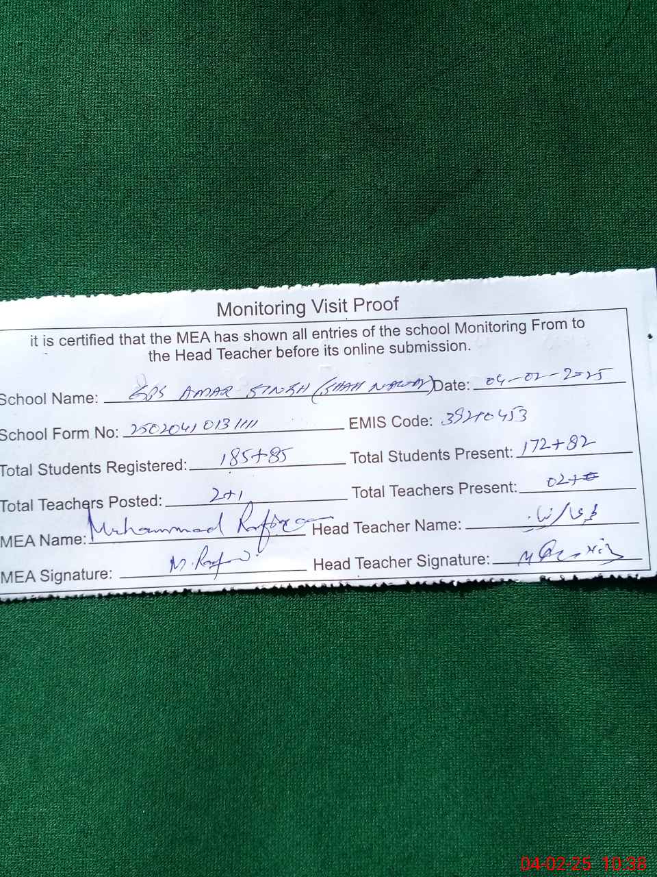 | EMIS Code: 39210453 | Name of School: GPS AMAR SINGH P/O 26/S.P PAKPATTAN | |||