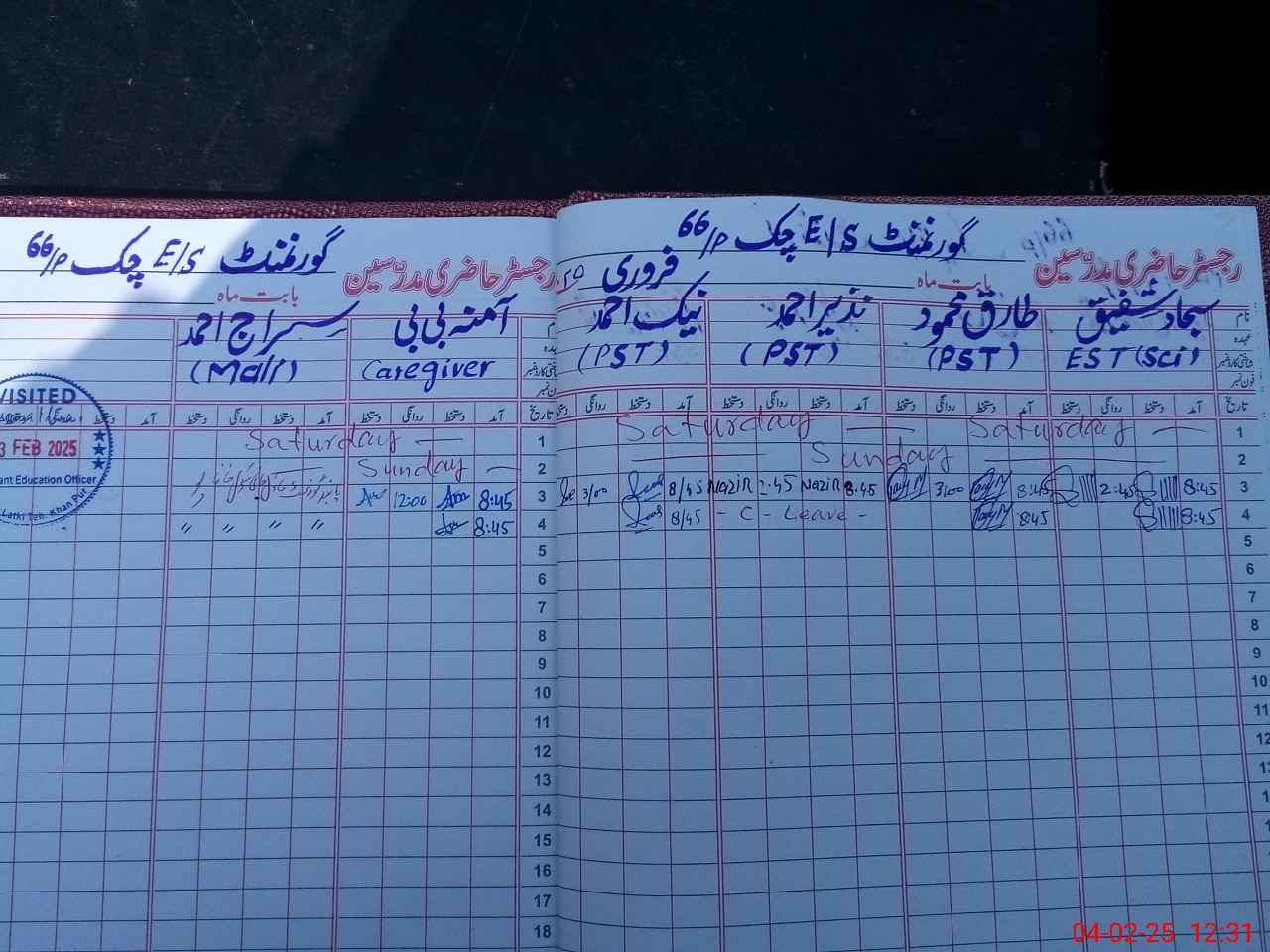 | Leave | Duty | Absent | Maternity | Medical | Ex- Pak |