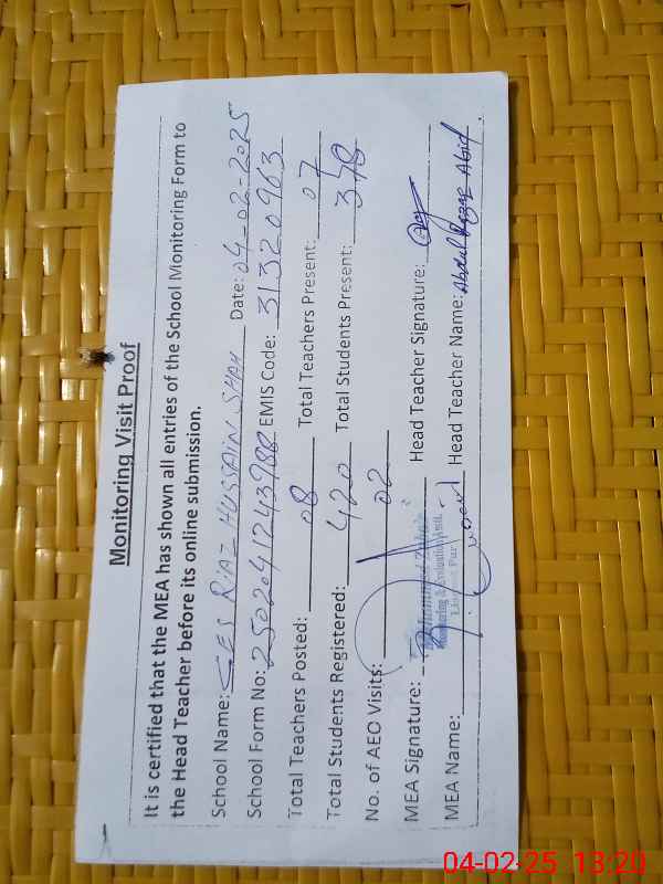 | EMIS Code: 31320963 | Name of School: GES RIAZ HUSSAIN SHAH | |||