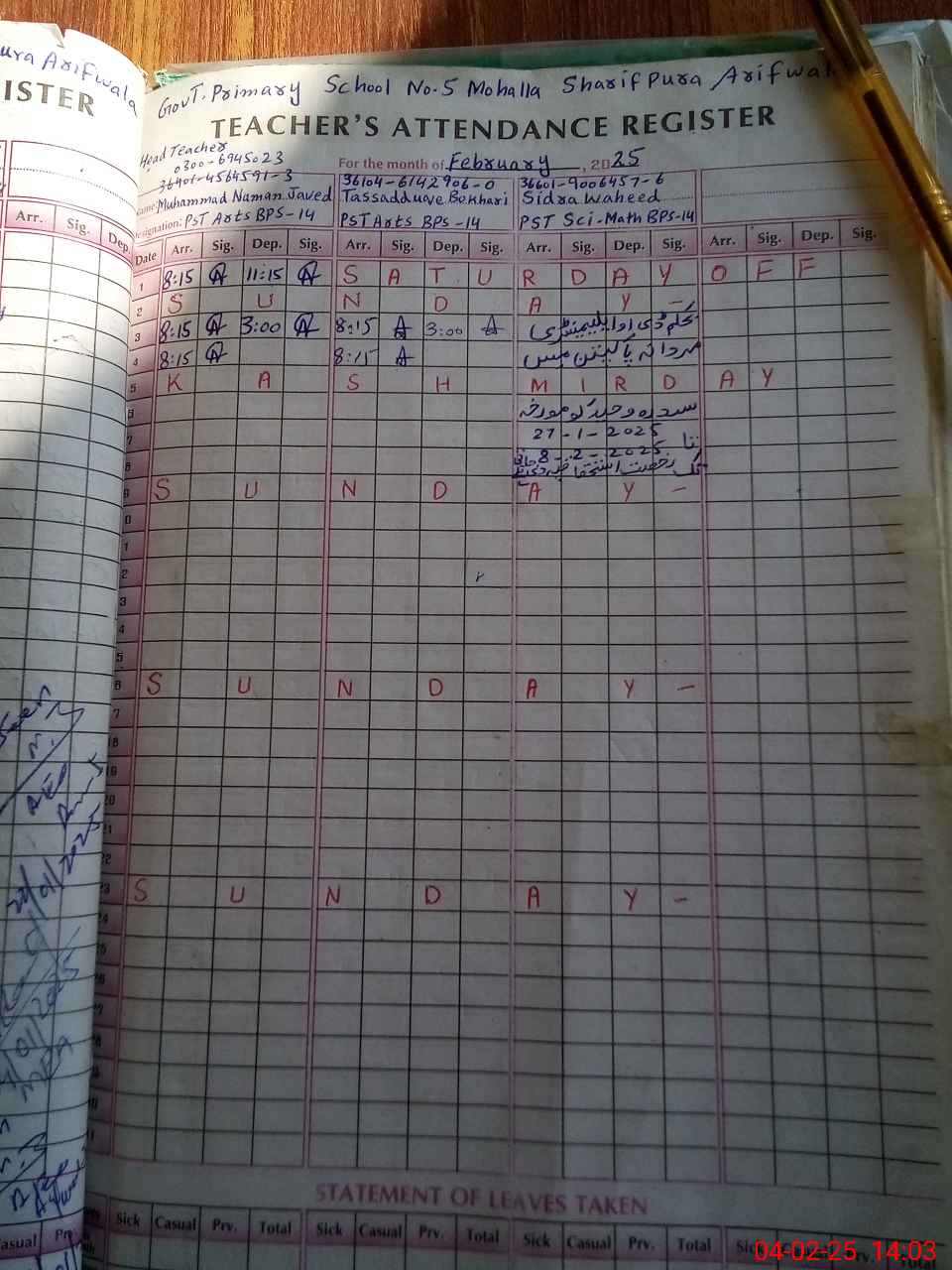 | Name: MU**** NA**** Designation: (School Headmaster's/Headmistress's) PST Phone/Cell Number: 03**** |