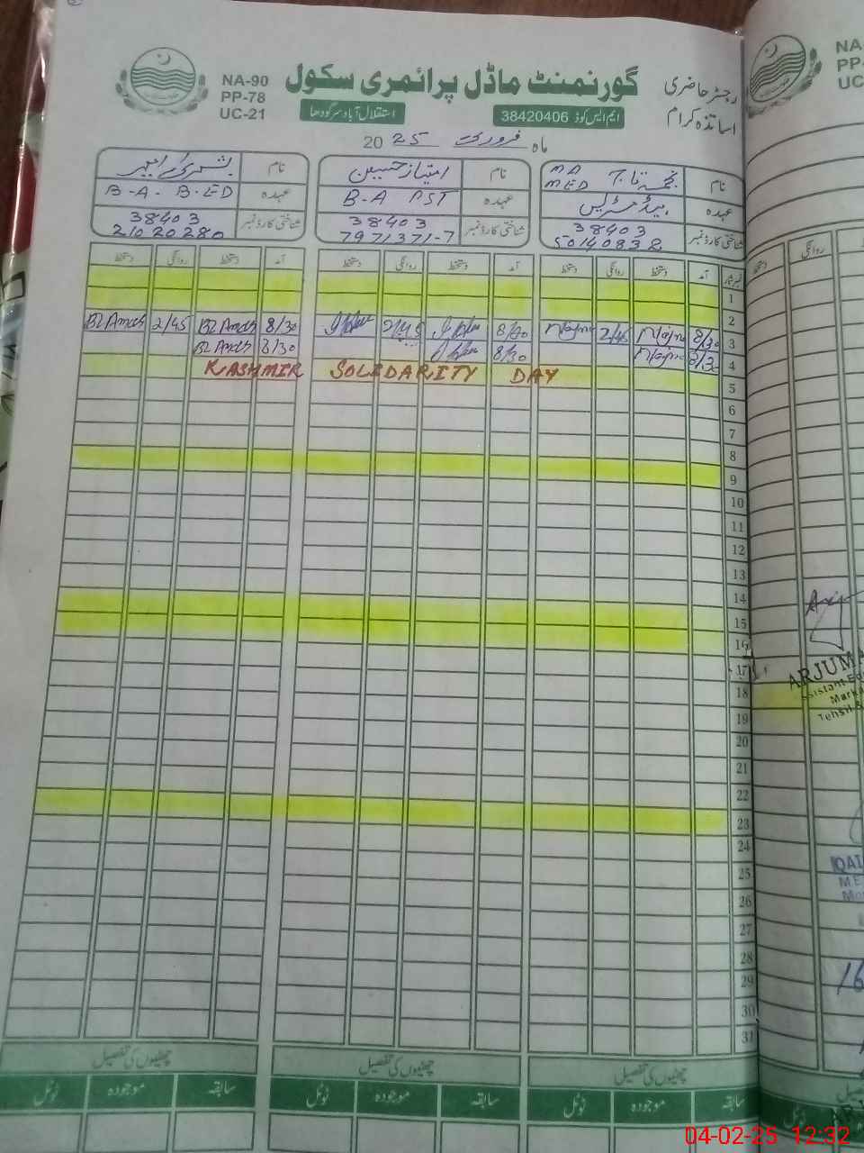 | Name: NA**** TA**** Designation: (School Headmaster's/Headmistress's) PST Phone/Cell Number: 03**** |