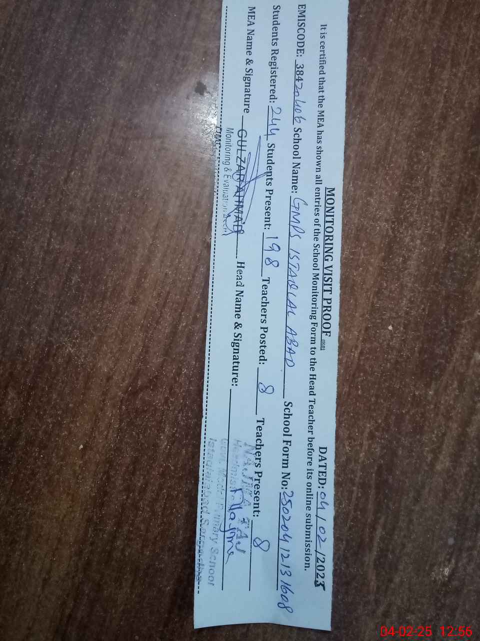 | EMIS Code: 38420406 | Name of School: GMPS ISTAQLAL ABAD | |||