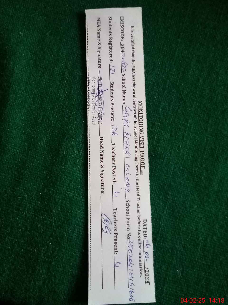 | EMIS Code: 38420822 | Name of School: GGPS BEHARI COLONY SARGODHA | |||