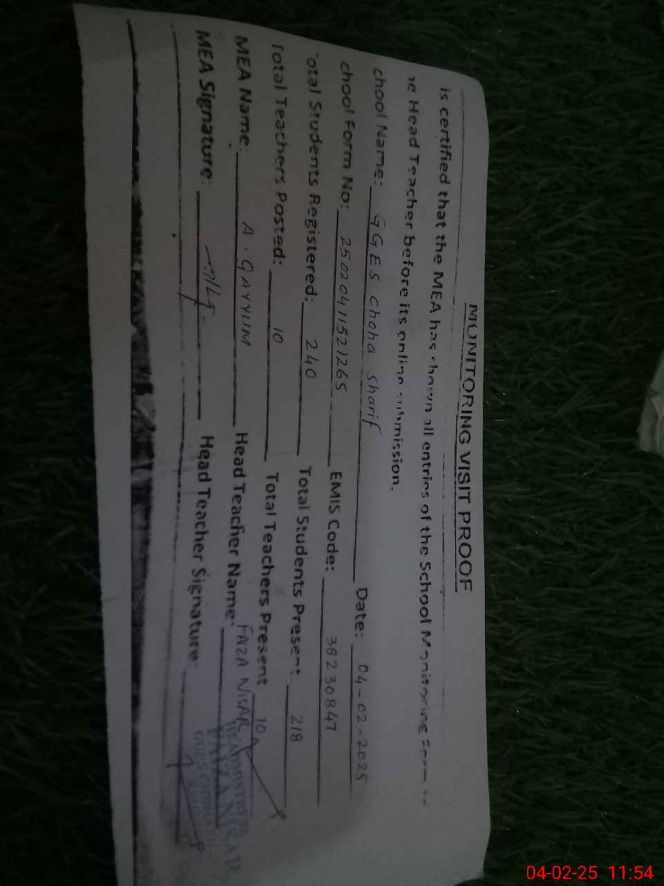 | EMIS Code: 38230847 | Name of School: GGES CHOHA SHARIF | |||