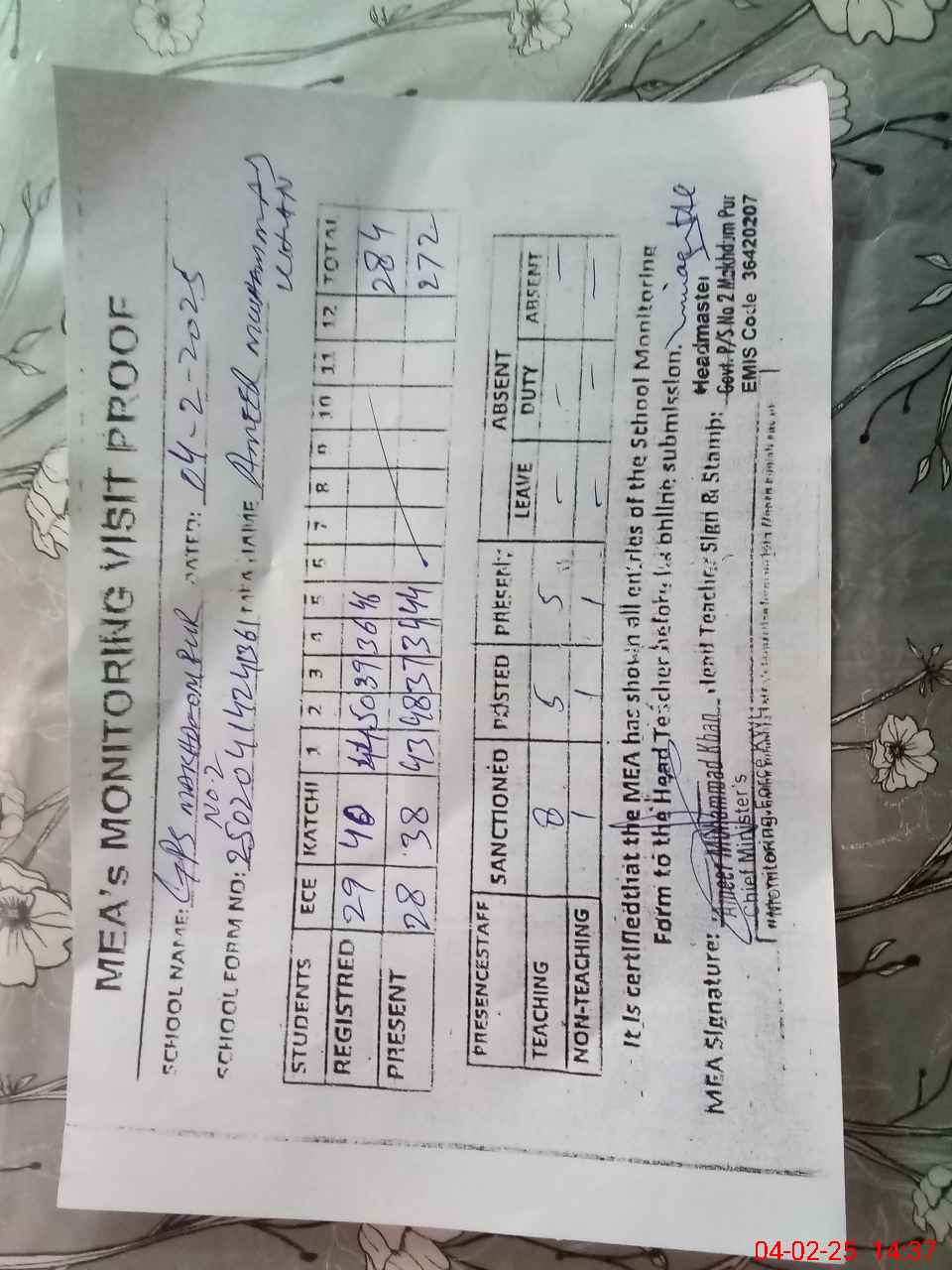| EMIS Code: 36420207 | Name of School: GPS MAKHDOOM PUR NO.2 P/O MAKHDOOM PUR, KHANEWAL | |||